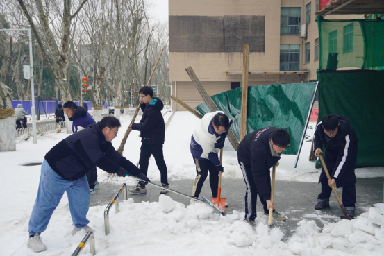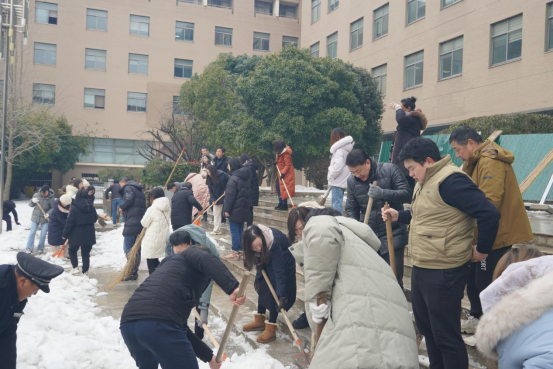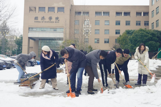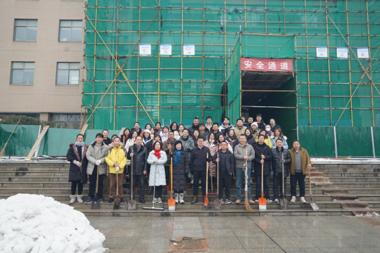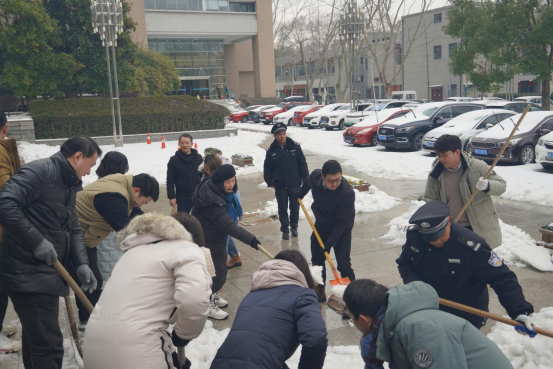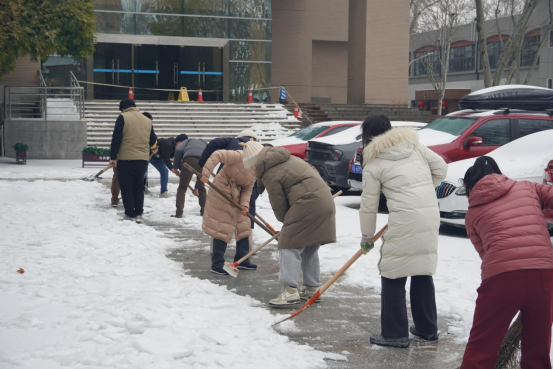 2月23日上午10时,学院党委高效统筹组织40余名党员师生,在领导班子的带领下组成一支干劲十足的除冰志愿者队伍,重点围绕学院出入口、学院前后门广场、出行主干道等区域开展除冰行动。学院合理布置铲冰除雪力量,采取分组协作的方式进行,快速扫清积雪,铲除坚冰。路面结冰湿滑,气温处于零下,但是参与的管院师生大家不畏严寒,齐心协力,手持铁锹、冰铲、扫帚等工具各显神通,互相加油鼓劲,齐心协力打扫除了路面干净的广场,方便了师生的安全出行,充分展现了学院党组织的战斗堡垒作用和广大师生党员的先锋模范作用。