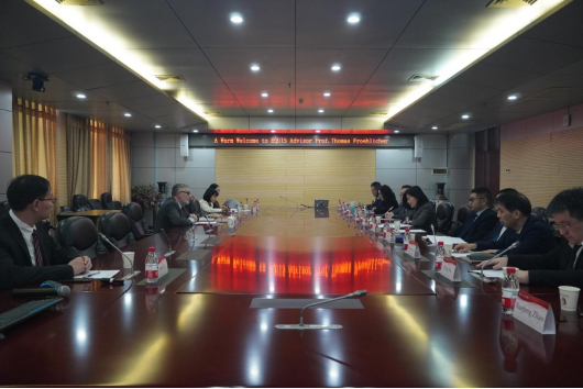 Froehlicher教授与学院全体领导班子和国际事务办进行了会谈。胡艳华代表学院向Thomas Froehlicher的到来表示热烈欢迎,她表示Froehlicher教授的到访对我院接下来的EQUIS认证工作具有举足轻重的意义。会上,学院国际事务办公室主任李安泰介绍了学校和学院的基本情况,以及学院在EQUIS认证的筹备工作。随后,杨治向Froehlicher教授到学院指导工作表达了衷心的感谢。