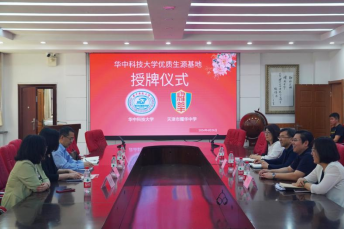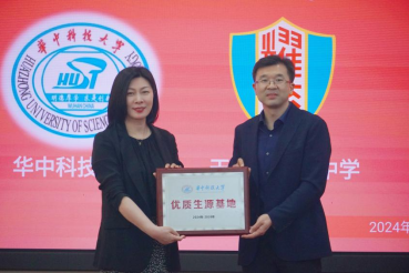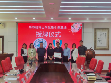 座谈会后,双方进行华中科技大学“优秀生源基地”牌匾授牌。