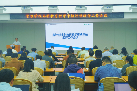 副院长刘智强对学院本科教育教学审核评估迎评工作进行了详细汇报。他首先介绍了新一轮审核评估的主要变化和关注点,随后对审核评估工作的要求、院校评建工作的开展情况以及评估应知应会内容进行了汇报。重点讲解了正式评估阶段对基层教学组织和师生的具体要求,并对学院迎评工作做了具体部署。他指出,评估不是结果,而是新的起点,应以此为契机,持续推进教育教学改革,促进专业的内涵式发展。