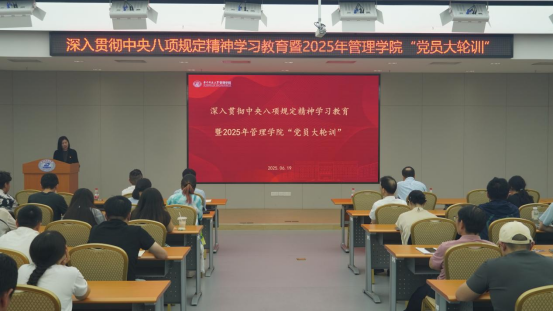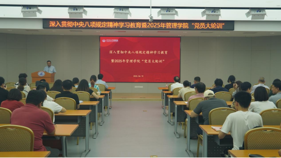 会上,校纪检监察机构第一纪检监察室副主任刘欢作了题为《铁规矩硬杠杠持续擦亮新时代党的建设“金色名片”——深入贯彻中央八项规定精神学习教育》的专题宣讲。通过详实的资料和生动的典型案例,深入阐释了中央八项规定作为新时代全面从严治党“第一刀”的深远意义。报告指出,八项规定实施十多年来,党风政风焕然一新,为党和国家事业发展提供了坚强保障。
