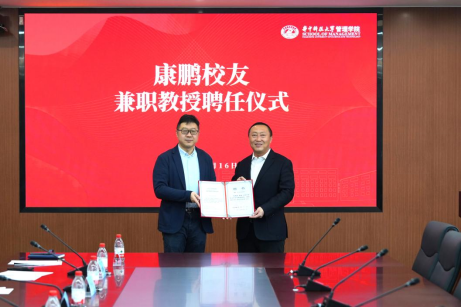 康鹏随后分享受聘感言。他表示,母校的管理教育奠定其事业根基,学院的学术视野拓展其行业认知,师长的谆谆教诲塑造其处事哲学。在捷通达数字化转型关键期,是母校的创新精神推动锐意改革,是学院的战略思维助力突破瓶颈。为此,他将把行业经验转化为教学案例,将企业管理课题引入研究体系,将产业资源对接学院需求,积极践行兼职教授的育人使命。