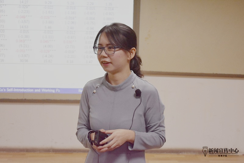 随后,她引出涉及方差与返回分布不对称这两类主要金融衍生品,并将其对应的情况代入模型,结合其对应的上行的和下行的金融环境这两种情形进行具体分析。紧接着,徐雅华以知名能源企业Kozhan的偏差风险为例,进一步分析在风险回归产生差异的具体情境下两种金融产品产生的溢价,得出中性的风险预期同样适用于金融建模的结论。