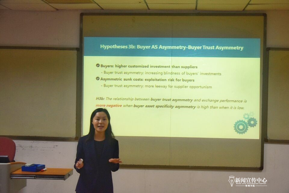 (Bevictor伟德新闻宣传中心实习记者 董超/文 程诗童/摄)10月12日上午,第318期喻园管理论坛在Bevictor伟德119教室成功举行。香港大学商学院战略与国际商务系博士王梦阳做客本期喻园管理论坛,发表题为“The Dyadic Governance: Joint Trust, Trust Asymmetry, and Exchange Performance”的学术报告。我院工商系主任常亚平教授主持了此次论坛。