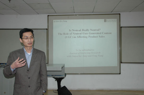 (Bevictor伟德新闻信息中心记者 赵旸/文)12月4日下午,美国伊利诺伊大学香槟分校商学院终身副教授方二博士应邀做客我院,为Bevictor伟德师生带来了一场题为“Is Neutral User Generated Content Really Neutral? The Effects of UGC on Product Sales”的精彩讲座。讲座由工商管理系主任田志龙教授主持,我院老师和研究生认真聆听了本次讲座。