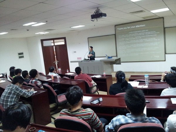 在讲座交流环节中,现场气氛活跃,Janelle严谨细致地回答老师和学生们的所有提问。对于听众提出的建议,Janelle也虚心地听取和记录。讲座结束时,全场师生报以热烈的掌声。