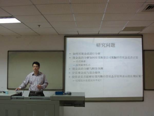 讲座接近尾声,张兆国阐发自己感受:“叶建明教授把会计现金流、应计分为正常与异常两类进行分析,这给我们提供了一个新的视野与方向。同时,他细致务实的实证精神应值得我们会计人好好学习。”