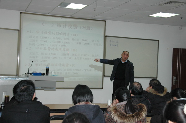 成果。其中,张龙平为师生们详细介绍了当前审计的研究领域、期刊范围,并用图表展示了审计中7