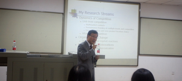 接着郑博士从他的四个主要研究方向:竞争动态、组织变革、知识与创新和竞争的源头引入,