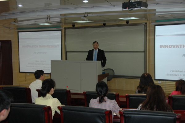 Oliver Yu教授首先用简明生动的公式说明了发明、创新、创新管理和创业等相关概念的定义和区