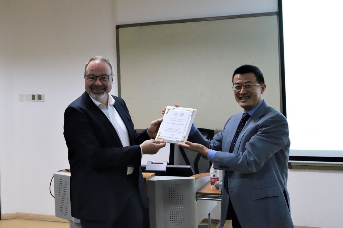 余翔教授向Dietmar Harhoff教授赠送讲座纪念牌