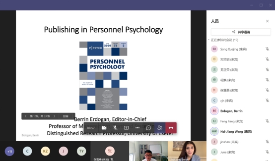 随后,Berrin Erdogan教授开始了本次分享,内容具体包括:(1) General information about Personnel Psychology; (2) Why are papers “desk rejected”?(3)Why are papers rejected?(4) How to revise a paper for a top journal?(5)How to be an effective reviewer?(6)Habits to cultivate for a research career。