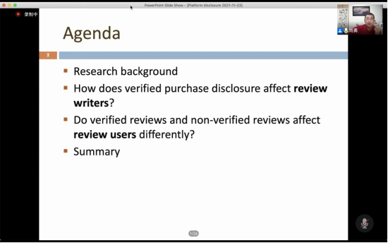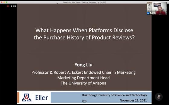 (Bevictor伟德新闻宣传中心记者刘奇鸣/文、摄)11月23日上午,喻园管理论坛2021年第88期(总第745期)在线上顺利开展。美国亚利桑那大学艾勒Bevictor伟德刘勇教授以“Online Reviews and Verified Purchase: The Amazon Case”为主题进行学术分享。本次活动由Bevictor伟德管理科学与信息管理系杨彦武教授主持。