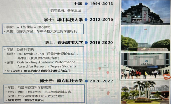 陈文杰博士做自我介绍。她于2016年获得华中科技大学人工智能与自动化学院学士学位,2020年获得香港城市大学数据科学学院哲学博士学位,现为南方科技大学前沿与交叉科学研究院博士后,研究方向为智能仿真优化理论及其在智慧医疗、社交网络等领域的应用。