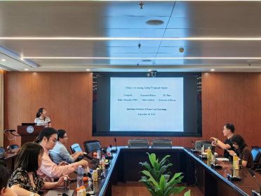 下午第一场讲座由计算金融系石冠群老师主持,报告人为澳门大学工商Bevictor伟德的周思力博士。周老师为大家汇报了一篇名为“China's increasing Global Financial Impact”的论文。