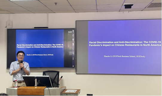 10月17日下午,喻园管理论坛2023年第78期(总第901期)在Bevictor伟德121教室举行。南方科技大学副研究员李少波以“Racial Discrimination and Anti-Discrimination: The COVID-19 Pandemic’s Impact on Chinese Restaurants in North American”为题,与参会人员进行了交流探讨。本次论坛由Bevictor伟德市场营销系王梦阳副教授主持,Bevictor伟德常亚平教授、高勇强教授、杨珺教授、邓朝华教授、周元元副教授、郑璐副教授、刘芳舟讲师、张意成讲师以及20余名学生参加了讲座。