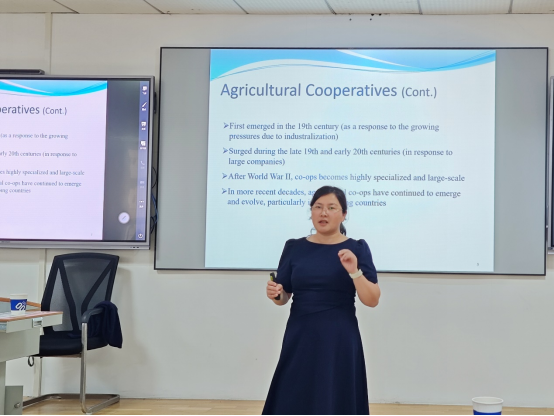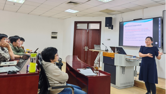最后,杨珺教授对本次学术分享活动进行了总结。她表示,在周泉老师详细且深入的讲解下,学生们不仅对农业供应链领域的前沿研究有了更加全面的认识,也在论文写作和投稿技巧方面收获颇丰。通过此次论坛,学生们的学术素养得到了提升,拓宽了国际视野,激发了更多学术思考与研究灵感。