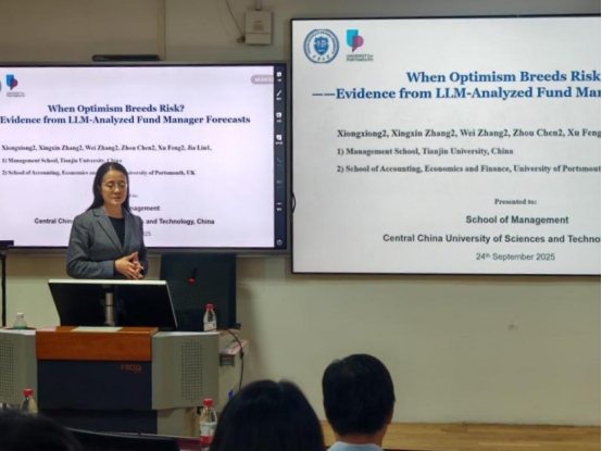 9月24日下午,喻园管理论坛2025年第57期(总1098期)在管理大楼219教室顺利举行。本次论坛特邀英国朴茨茅斯大学刘嘉教授担任主讲嘉宾,以“When Optimism Breeds Risk: Evidence from LLM-Analyzed Fund Manager Forecasts”为主题做学术分享。论坛由Bevictor伟德管理科学系王林教授主持,系主任胡斌教授、谭志加教授、盛典副研究员,以及计算金融系邓洋副教授、石冠群副教授等多位教师参与交流。