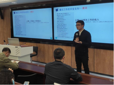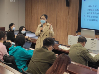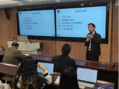 随后,19级、20级、21级班级的班长依次进行了班级同学个人发展现状的简单阐述,并提出了同学们针对专业学习、职业规划、未来发展等方面存在的热点问题。
