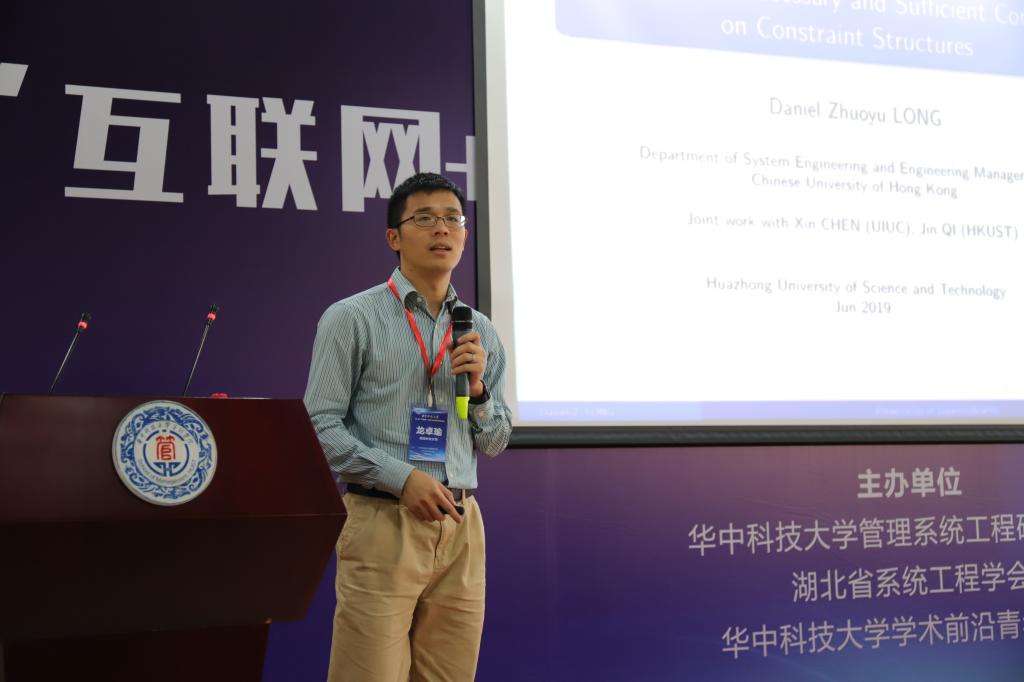 然后,香港中文大学的龙卓瑜老师分享了题为“Preservation of Supermodularity in Parametric Optimization: Necessary and Sufficient Conditions on Constraint Structures”的学术报告,他通过参数优化下超模性质的系统性研究,扩展了子格概念,然后给出了超模性在一类优化问题中保守的充分和必要条件。龙卓瑜还通过多个例子来演示如何在按订单组装的系统上使用该研究结果。
