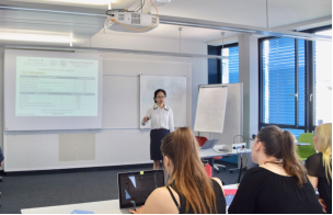 在学术交流方面,德方高级法律顾问、知识产权专家Nina Goes博士向师生们做了题为“Company-IP-Management”的主题报告,介绍了德国和欧洲的商法,并结合实例对德国企业发明专利、实用新型、外观设计、商标的特征、保护范围和判定作了详细论述。