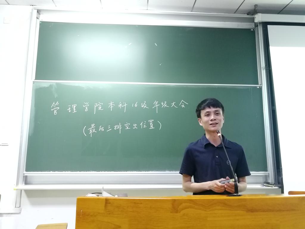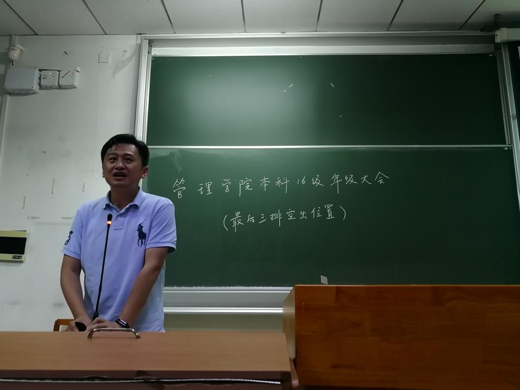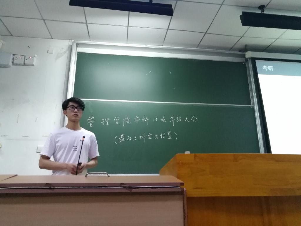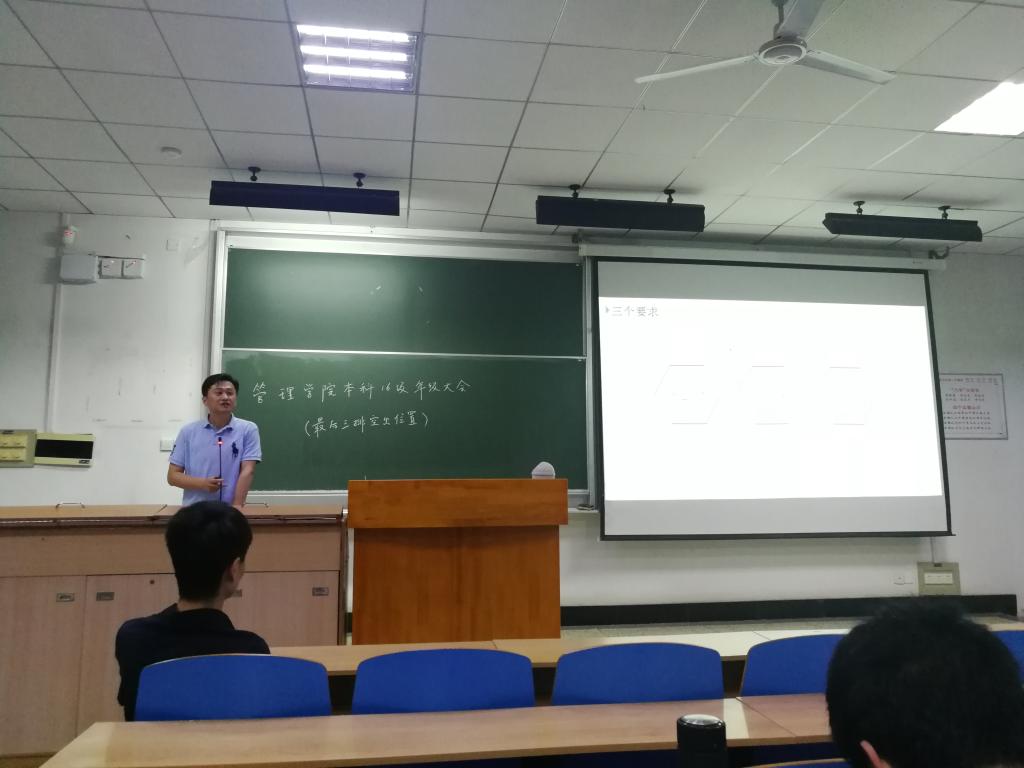 最后,滕宏达对明年即将毕业的全体16级同学们进行就业意向统计并发表寄语。滕宏达谈到,在学习的专业知识之余,学校和学院环境的熏陶同样重要,希望同学们在享受大学生活的过程中能更多地提高“管理者”的素养。