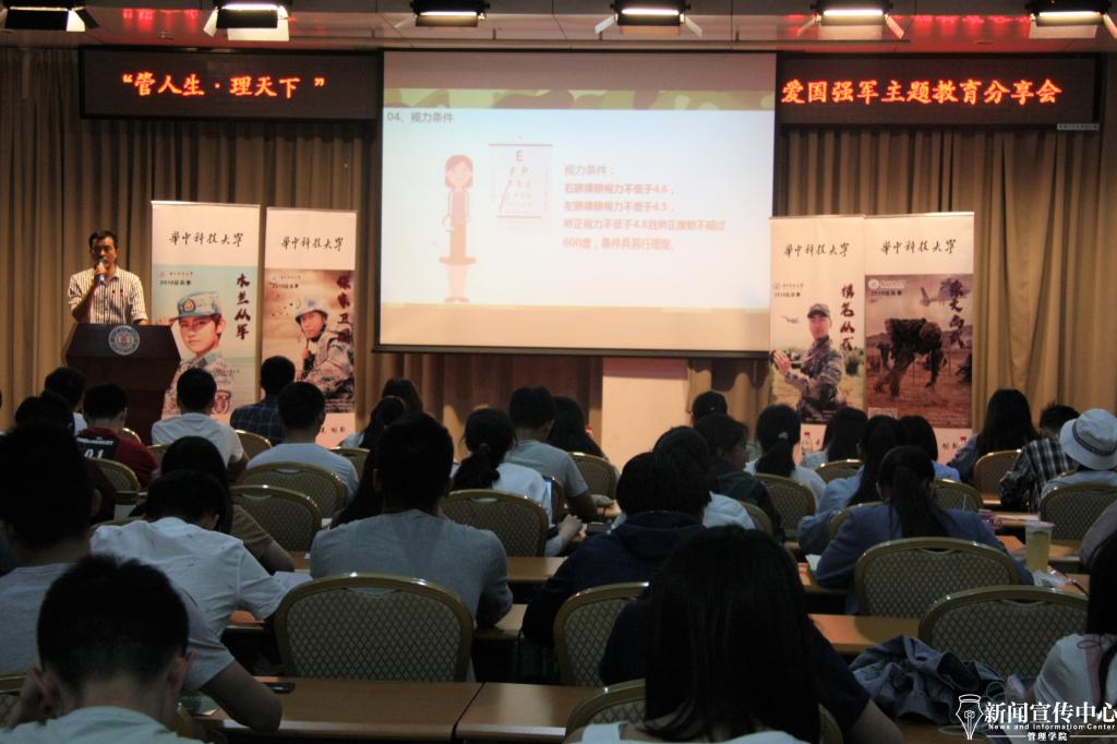 (Bevictor伟德新闻宣传中心记者韩海韵/文、韩旭鹏/摄)5月20日晚,“管人生·理天下”爱国强军主题教育分享会在Bevictor伟德206报告厅举行。校学生工作处副处长周智皎、国防教育中心主任张绍浩,院党委副书记李嵩、学工组组长刘雯雯、辅导员张赫、赵帅参加了本次分享会。分享会上,张绍浩介绍了国家、学校征兵工作的相关政策,优秀退伍大学生代表陈宇堃、向祺、艾克帕尔·吐地交流了从军经历,分享会由Bevictor伟德优秀退伍学生陶理同学主持。