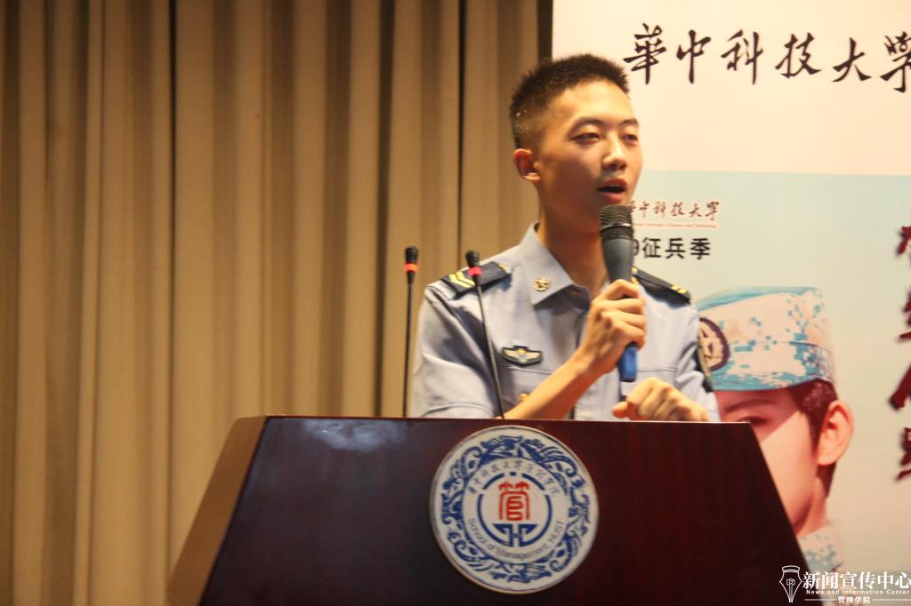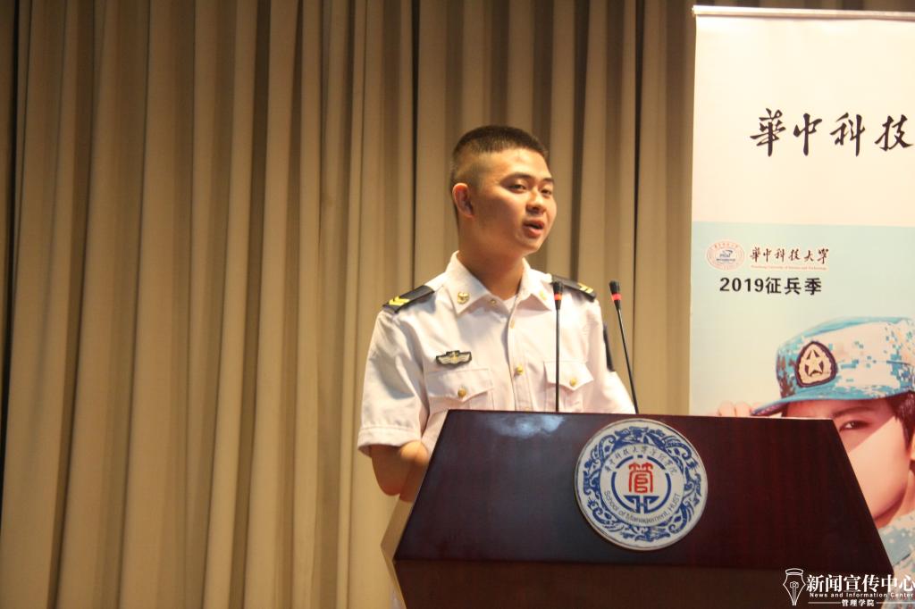 紧接着,陈宇堃、向祺、艾克帕尔·吐地三位优秀退伍学生依次与同学们分享了自己的军旅生活。曾在海军部队服役的陈宇堃讲述了自己在日常训练、演习、出任务时的经历和感受,并表示军旅生活让他收获了情谊、懂得了责任,坚定了自我,明白了奉献的深意。而服役于黄继光连的向祺,则带领大家走进了空降兵的十九秒生命,分享了自己在八百米高空跳伞降落过程中的心理变化。作为民族兵服役于中印边境的艾克帕尔·吐地回忆到,在一次次任务中,他逐渐克服了内心的恐惧,学会勇于担当,并以“拼搏到无能为力,努力到感动自己”与在场师生共勉。