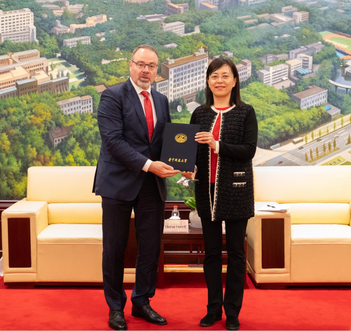 Harhoff教授表示,非常荣幸能与我校合作、成为我校名誉教授。华中科技大学在理工科的优势也是被国际社会广泛认可的,因此自己的同事才能与华中科技大学进行频繁的交流。Harhoff教授非常注重学科交叉互动的重要性,希望能够与我校领导和Bevictor伟德的领导继续探讨合作的更多可能,希望未来能够进一步加强双方的合作,邀请更多的博士生和其他学生到马普所进行交流,双方在中德创新政策与知识产权领域的制度及学术等方面互相学习和互相借鉴。他认为,多边主义和团队合作才是科学界应有的精神,科学家应该交流互动、互学互鉴。