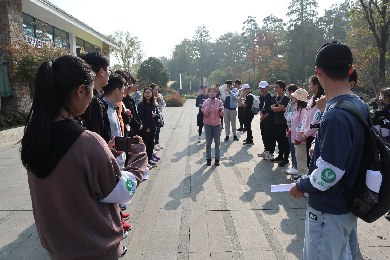 早上7时许,近百余名来自全校各个院系的硕博研究生陆续来到南一门集合,工作人员将全体成员分成7支队伍后,统一宣读活动规则并发放活动物资,随后在队长的带领下乘坐地铁前往东湖梨园开启一场关爱自闭症儿童的公益徒步之旅。