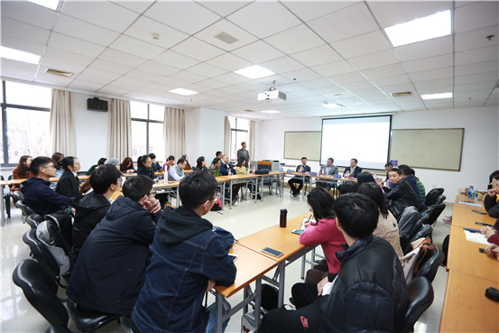 在219教室举行的市场营销主题分会场由管院副教授周元元主持,到场嘉宾有武汉迪赛环保新材料股份有限公司董事及总经理陈建和、江苏省再保融资租赁有限公司董事长解勇、武汉华侨城实业发展有限公司欢乐谷旅游分公司总经理李珂晖、武汉逸飞激光设备有限公司董事长吴轩、武汉虹识技术有限公司董事长易开军、湖北双雄醉健康酒业有限公司董事长及总经理郑书军。