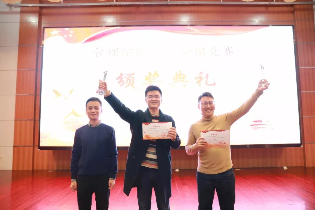经过激烈角逐,硕士2019级MBA党支部、硕士MPAcc第一党支部获得一等奖,硕士2018级管理科学与工程党支部、本科第四党支部、博士2018级党支部获得二等奖,本科第五党支部、博士2019级党支部、本科第二党支部、硕士2018级企业管理党支部、MPAcc第三党支部获得三等奖。硕士2019级MBA党支部书记黎康、硕士MPAcc第一党支部书籍程伟杰获得优秀组织奖。最后,参赛选手与嘉宾进行合影留念。