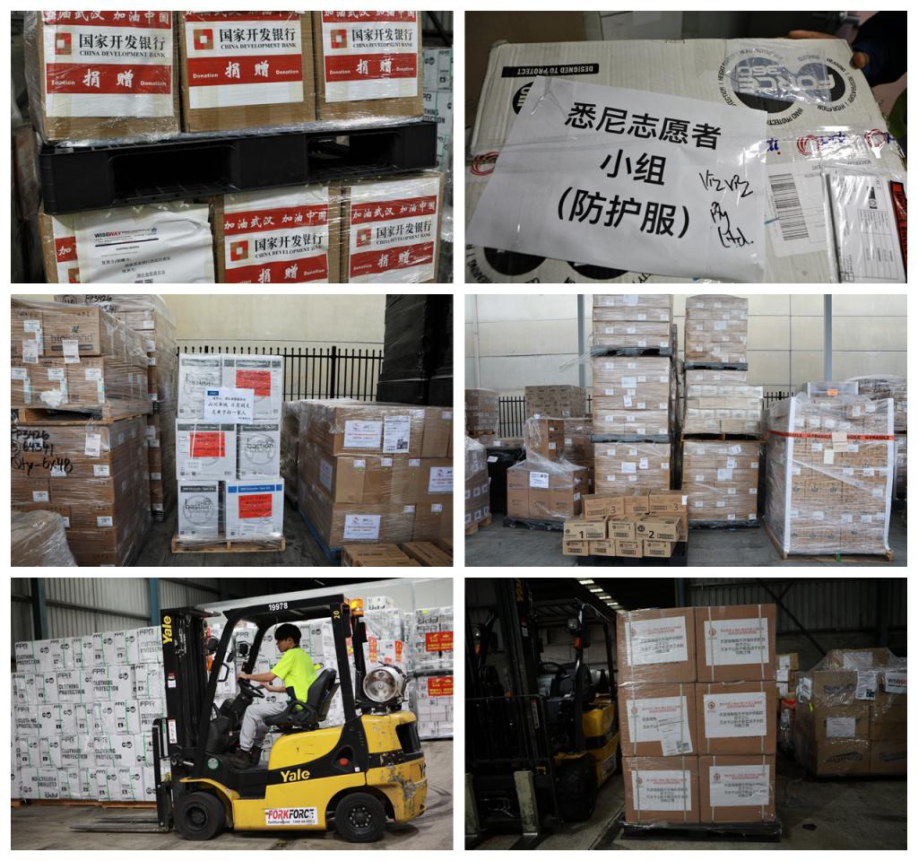 2月1日,首批募集的价值30万澳元的医用口罩、防护服等急需物资,运抵武汉防疫前线。