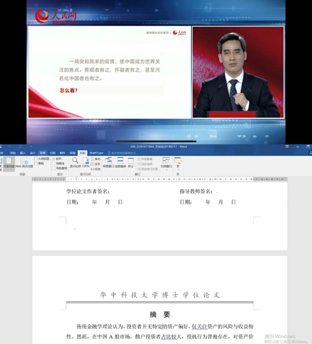 充分利用假期时间,积极投身科研,并借助网络进行远程协同,毕业设计各项工作顺利开展,不折不扣认真完成博士毕业论文。