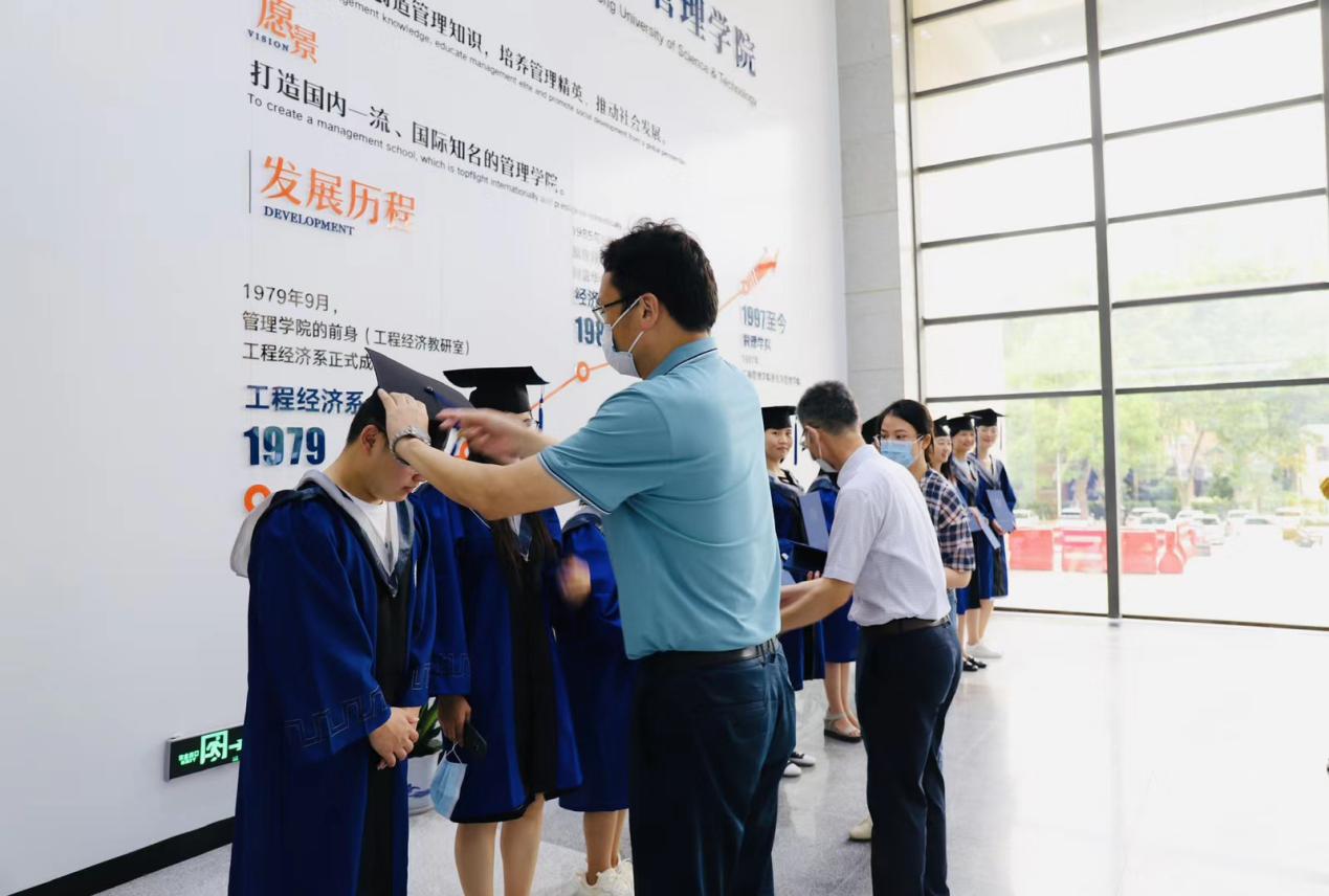 上午11时,张新亮副校长、研工部黄贝娜副部长赴学院参加迎接毕业生返校活动,张新亮与学院党委书记金凌志一同为返校毕业生拨穗,发放毕业证与学位证,代表学校为同学们送上了毕业祝福。