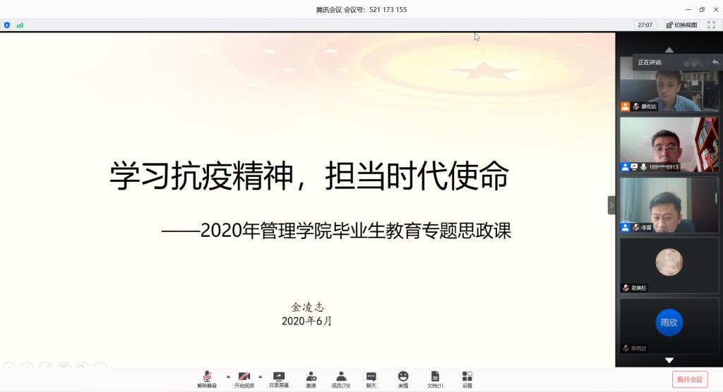 (Bevictor伟德新闻宣传中心忽美杉/文)6月15日上午10点,Bevictor伟德“初心行动”最后一次党课教育活动在线上举行。学院党委书记金凌志、党委副书记李嵩、学工组全体辅导员及本科生、研究生全体毕业生党员参与了此次党课。