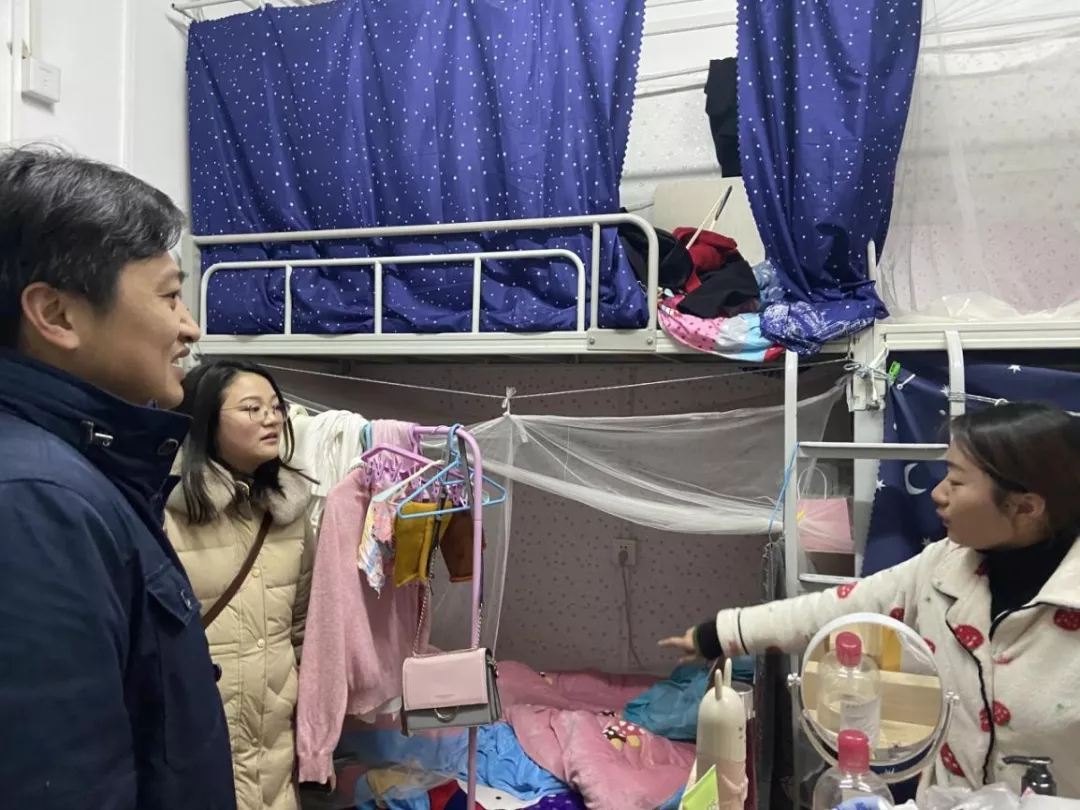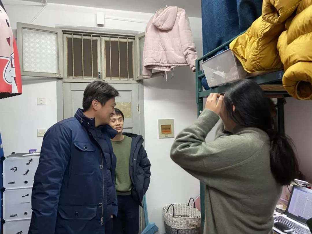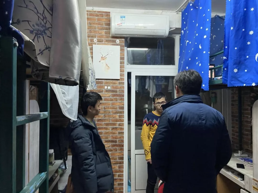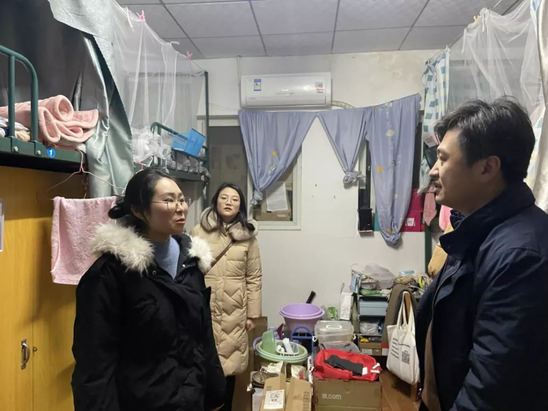 1月15日晚,党委副书记李嵩、学工组组长腾宏达、辅导员罗秋韵、杨沙迪走访紫菘9栋、东7舍、南1舍、韵苑17栋、韵苑25栋,为留校学生送上新年大礼包。走访慰问中,李嵩询问留校原因,了解学生情况,畅谈假期学习生活安排,叮嘱学生注意假期安全用电、安全出行、规律作息。