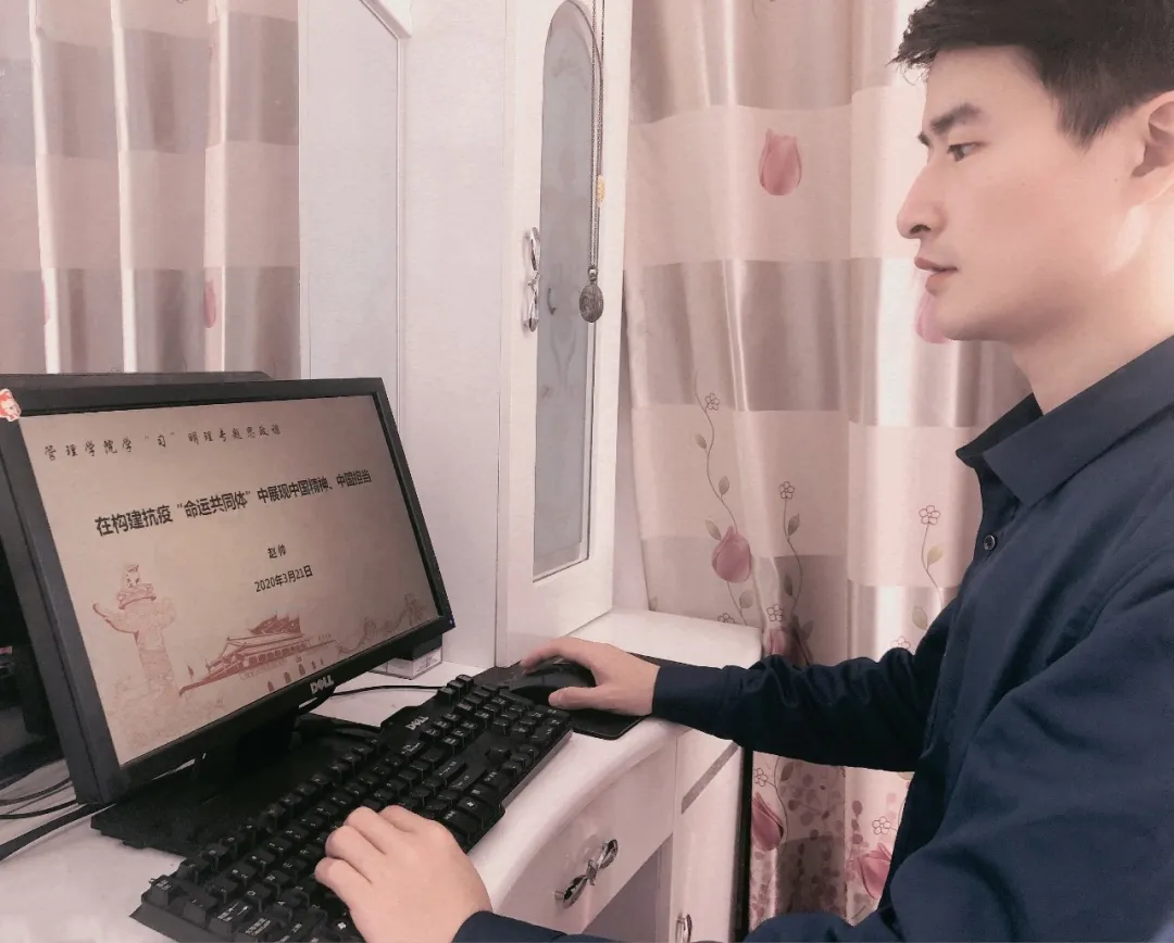 首先,赵帅以“在构建抗疫‘命运共同体’中展现中国精神、中国担当”为主题,讲授思政课。他从从武汉确诊病例“零新增”,全国本土确诊病例“零新增”的现状引入,介绍了“中国‘抗疫’战场,展现出的中国精神”。赵帅认为,中国精神主要体现在以习近平同志为核心的党中央坚强有力的领导,体现在集中力量办大事的中国特色社会主义制度优势,体现在新中国成立以来社会主义现代化建设形成的综合实力,体现在中国人民团结一心、同舟共济的英勇奋战。紧接着,赵帅介绍了中国在世界“抗疫”战场上展现出的中国担当:为世界争取到非常难得的“机会窗口”、为其他国家提供及时有力的帮助、为全球“战疫”提供弥足珍贵的经验。随后他表示,大道之行、天下为公,各国应该加强国际合作,以团结取代分歧,以共识消除偏见,以行动替代犹豫,构建人类共同体。在思政课的最后,他用习近平主席的话鼓励大家:广大青年用行动证明,新时代的中国青年是好样的,是堪当大任的!