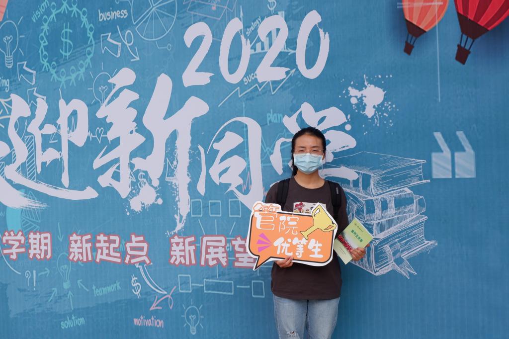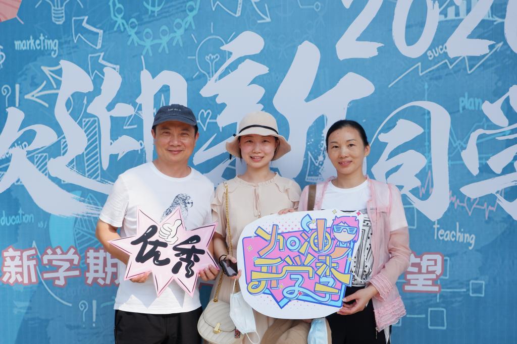 新生和家长们举着学院准备的趣味板在大厅、迎新背景板、学生公寓等处打卡留念,记录下这人生中的重要时刻。相信他们能够如同背景板上所写的一样,在新学期、新起点,展望未来,乘风破浪。