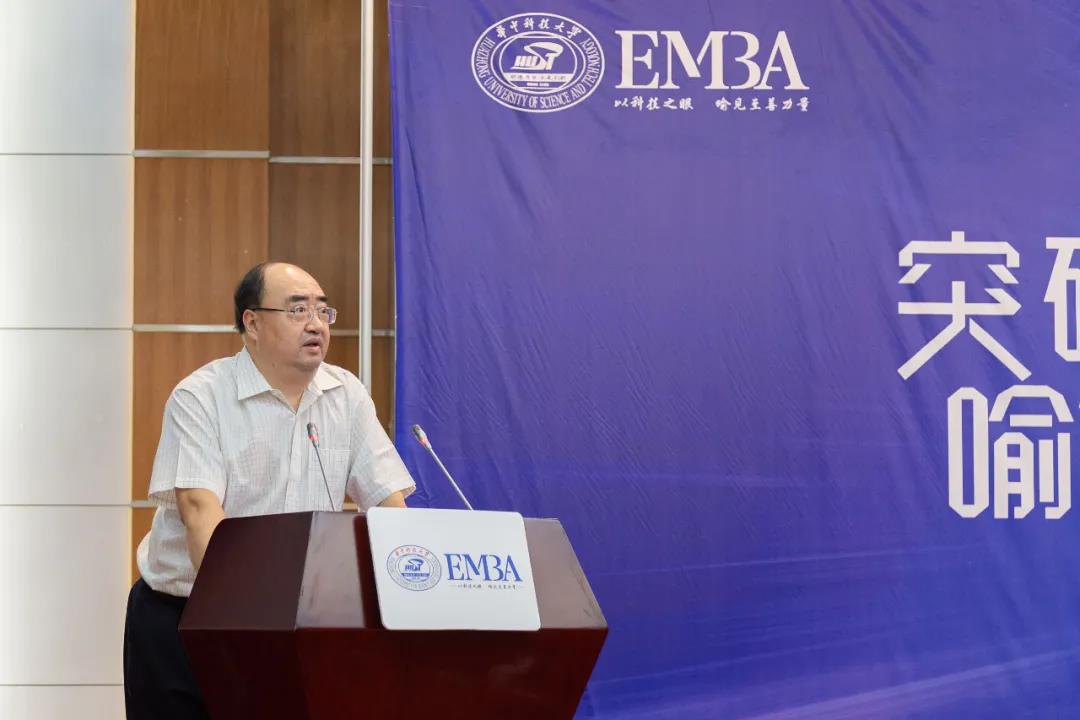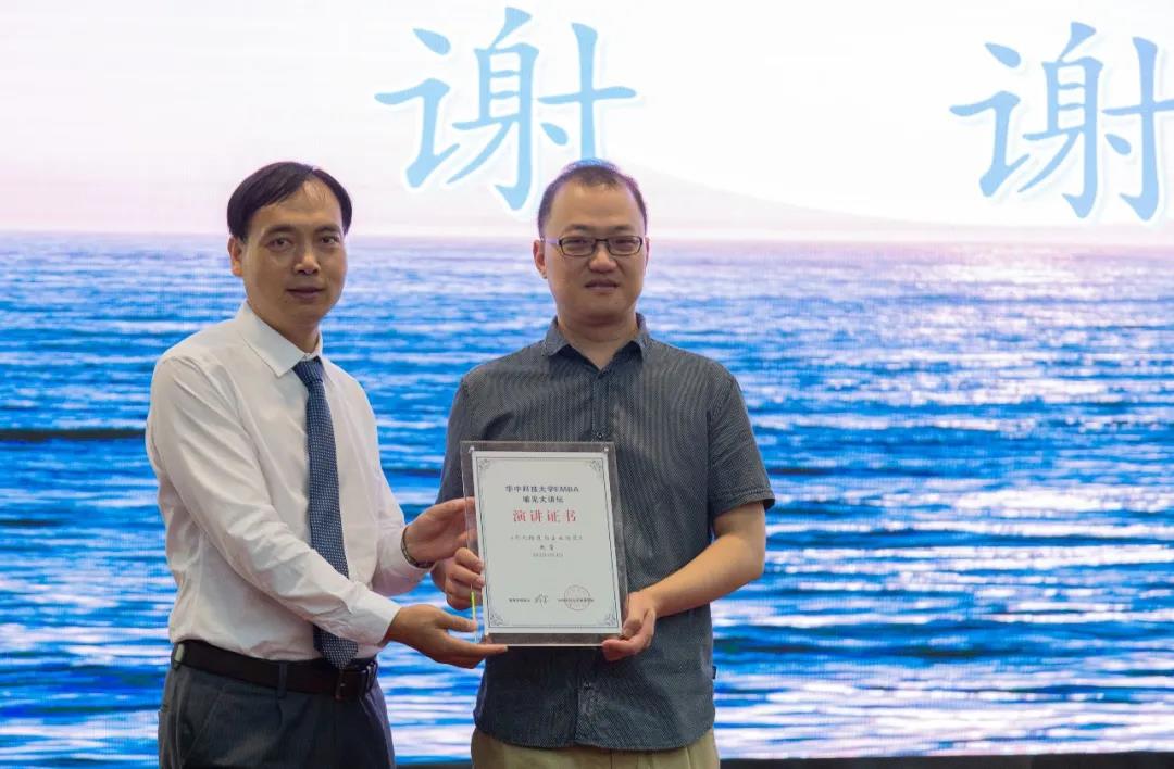 随后,2019级研究生学员代表、武汉齐物科技有限公司总经理杨小清受邀发表讲话,祝贺2020级新生顺利成为华中科技大学EMBA的一员,并分享了自己一年以来在华科EMBA学习的心得感悟和学习经验。