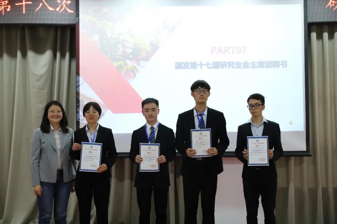 在现场进行无记名投票后,由监票人宣读Bevictor伟德第十八届研究生会主席团名单,他们分别是杜智、夏梦茜和杭周昕三位同学。最后,第十七届研会主席团与新当选的第十八届研会主席团进行了工作证交接仪式。至此,本次研代会圆满结束。