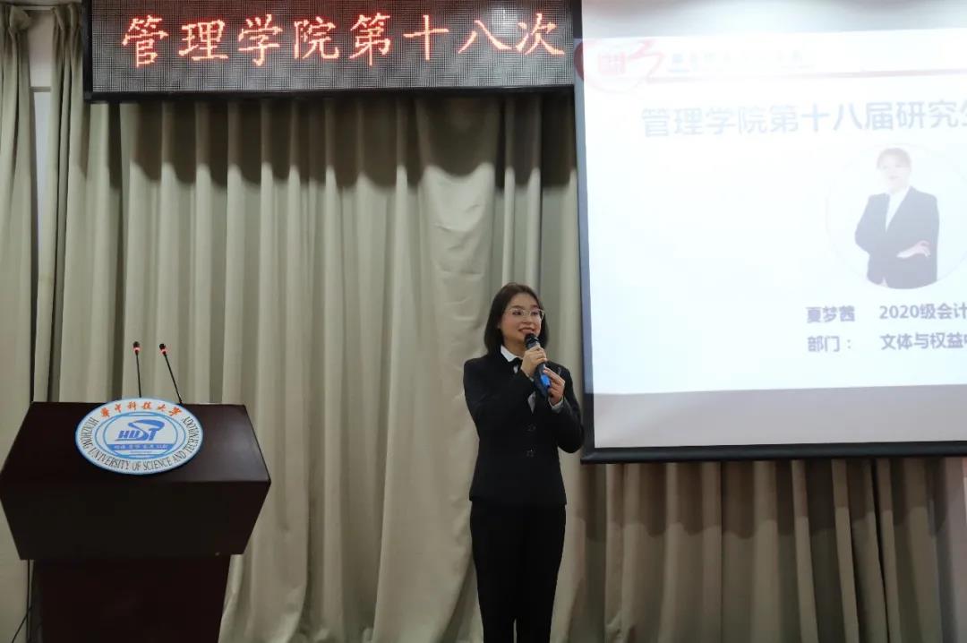 院党委副书记李嵩老师,校党委研究生工作部郑名扬老师,学工组长滕宏达,研究生辅导员杨沙迪、罗秋韵,以及各位德育助理参加了本次会议。校研究生会主席团孙铭越以及其他兄弟院系的研究生会主席等嘉宾受邀参加,管院研究生会执行主席夏浩能、研究生会主席团成员、第十七届研究生会成员以及各班级代表参加本次大会。