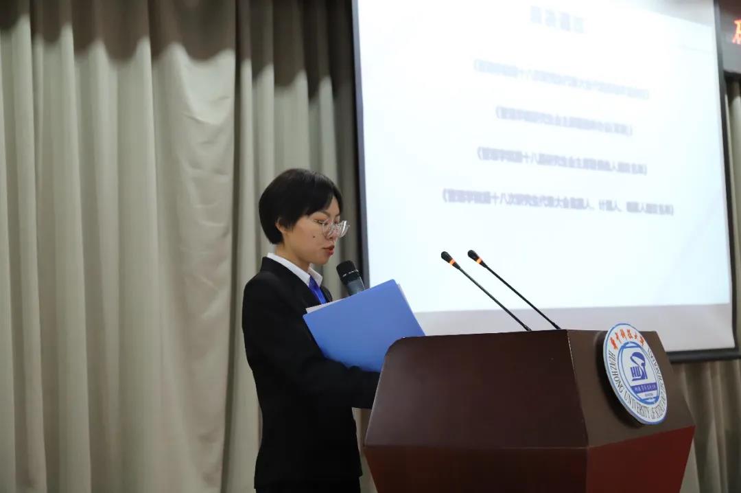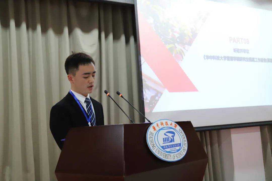 大会进入第二部分。研究生会主席团成员高通才作《华中科技大学Bevictor伟德第十八次研究生代表大会提案工作报告(草案)》,全体代表听取并审议通过。