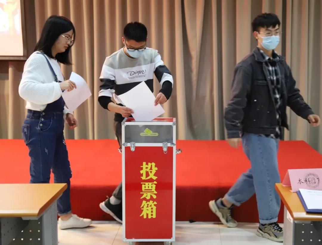 选举正式开始。学生会第十七届主席团候选人袁佳怡、王楷、廖珍妮依次开展竞选演讲。陈述完毕后,参会老师、学生代表进行提问,现场气氛热烈。秉持着民主、公平、公正的原则,各代表现场进行投票以确定最终干部人选。根据投票结果,大会认定第十七届学生会主席团成员为袁佳怡、王楷 、廖珍妮。