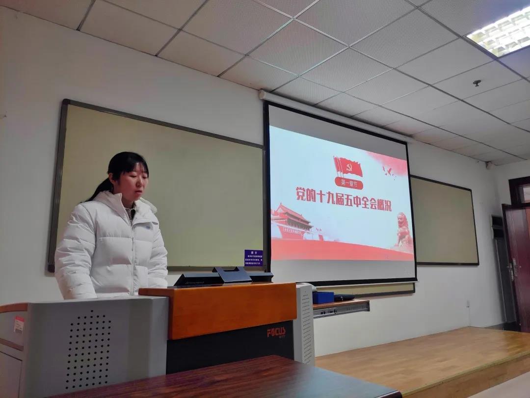 党课学习后,赵玲就十九届五中全会精神的相关学习内容发表学习感想。赵玲提到,在国家发布的许多重要文件中,我们能找到一些提出研究问题的启发。例如全会提出,实施积极应对人口老龄化国家战略,面对这样亟待解决的社会问题以及社会需求,赵玲鼓励学生党员结合自己的研究方向和内容,提出相应的研究问题。