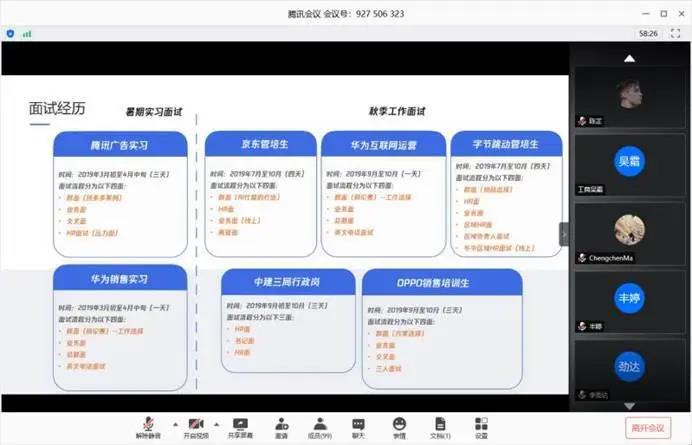 在短暂的中场休息过后,下半场的发展交流邀请了双方就业、出国、保研的同学分享自身经验。本环节也同时向非党员同学开放,线上参与人数超100人次。