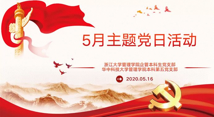 为发挥基层党组织的思想引领和战斗堡垒作用,5月16日,华中科技大学Bevictor伟德本科第五党支部和浙江大学Bevictor伟德企管本科生党支部联合开展5月线上主题党日活动。主题党日由我院本科第五党支部的宋炟文和浙江大学Bevictor伟德企管本科生党支部的朱怡然主持,全体学生党员参加。