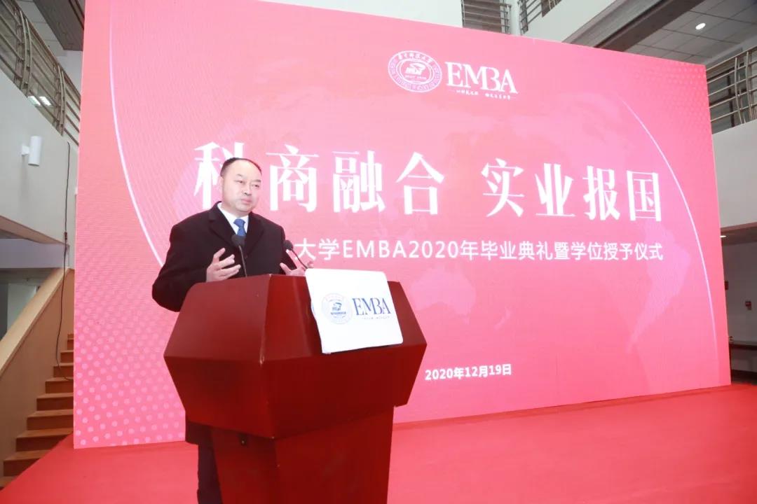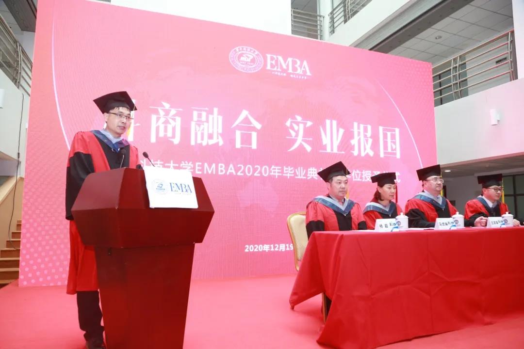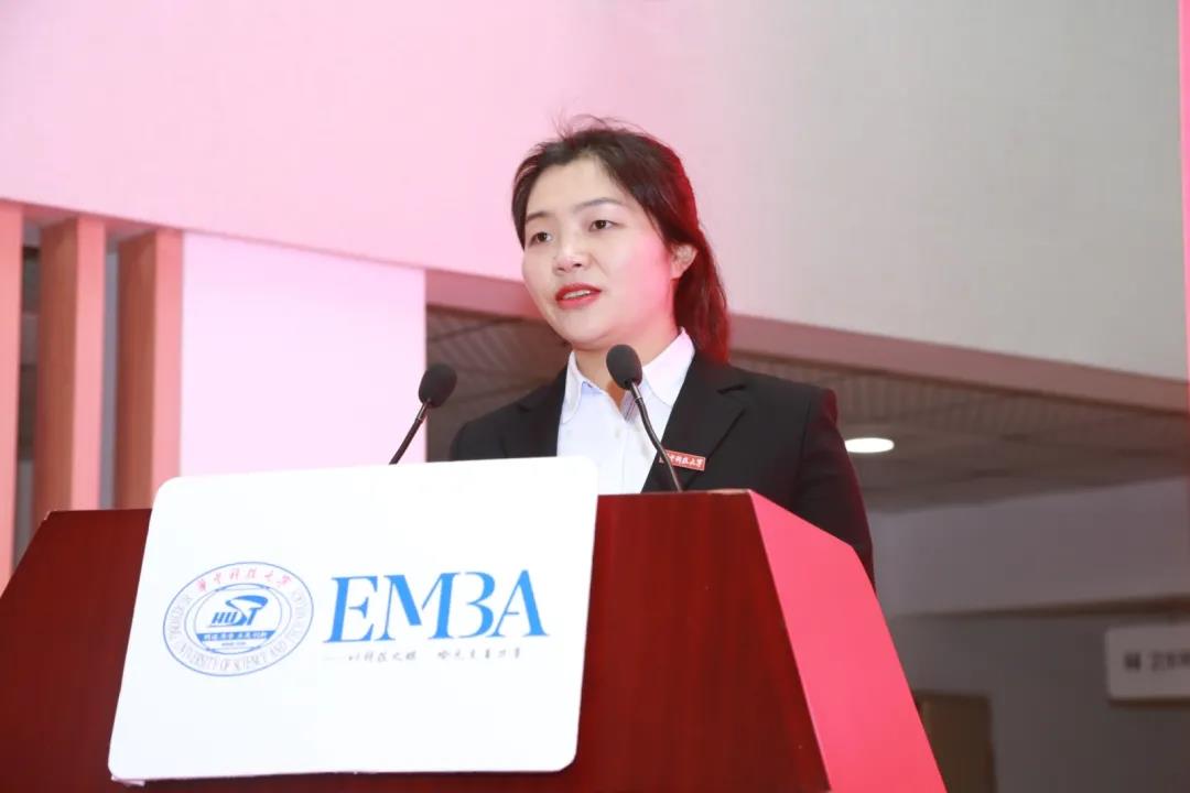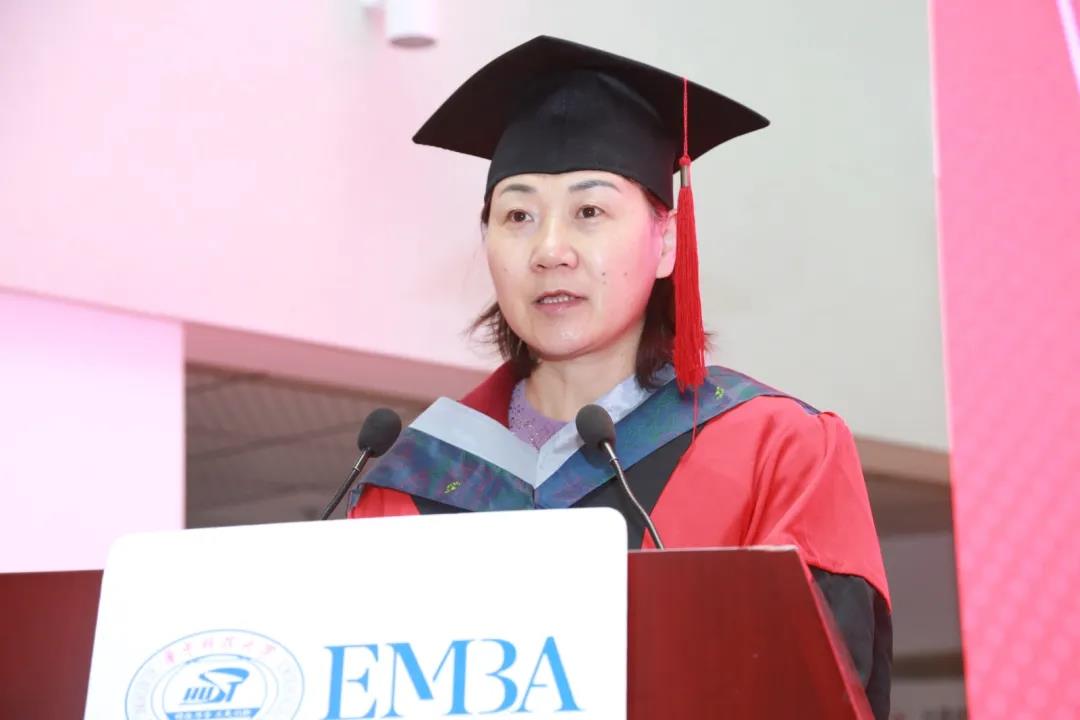 作为毕业生家属代表,刘莉医生表示,面临突如其来的重大疫情,华中科技大学的老师们坚守岗位,自己的家人坚持在线学习,校友们捐款捐物,给了医务工作者抗疫强大的动力。希望EMBA的学子珍惜大好时光,做有益于人民、有益于社会的人,家人也会做他们坚强的后盾。