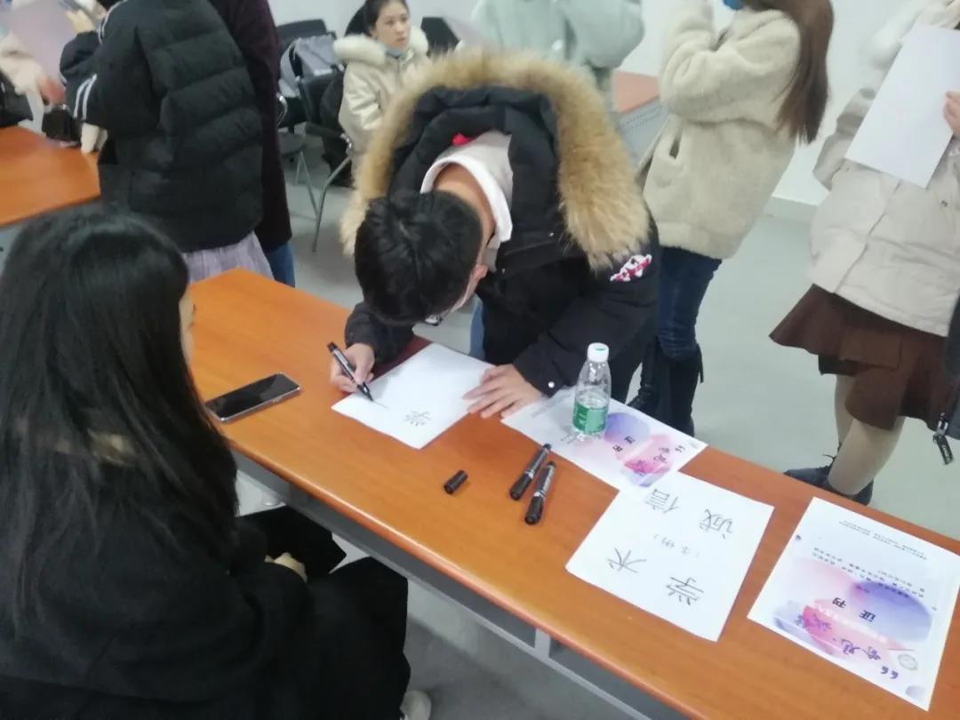 公管学院的挑战需要团队成员顺利描摹“学术诚信”四个字,描摹过程中不得超出字帖中各字体的边缘,能够描摹完成并不触碰任何边缘则视为成功,活动现场人头攒动,每个队的成员在描摹时都屏气凝神,十足的认真。