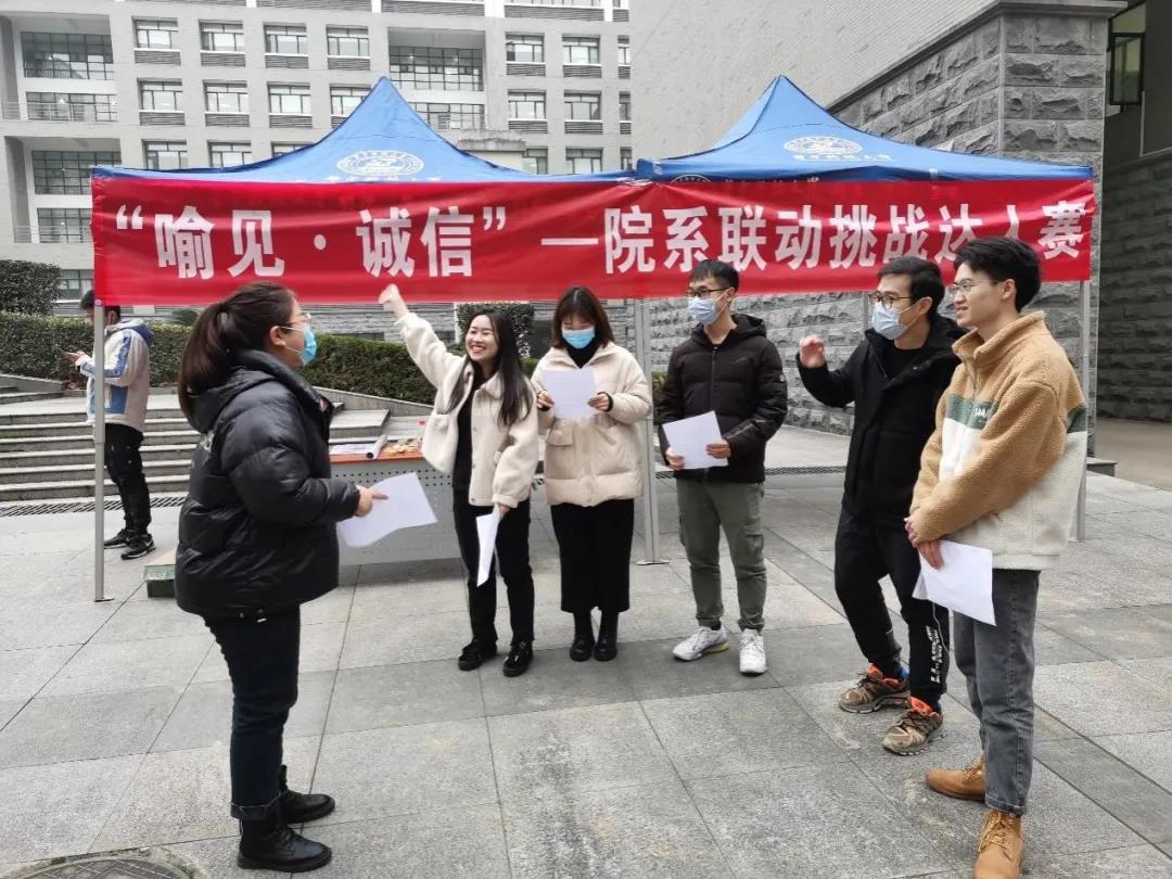 每个学院的“打卡”站点都各有特色,新闻学院设立的打卡点主要有三个任务区:一个是拍一张你认为学校里与“诚信”最为相关的照片并说明原因、一个是在图书馆采访学生对“学术诚信”的看法,还有一个是以“学术诚信”为主题进行现场一分钟的即兴演讲。无论是哪一个任务都与活动的主旨——“学术诚信”密切相关,大家也都陈述了自己对学术诚信的看法与认识。通过有趣的小游戏,参与活动,获得有关学术诚信的相关知识与心得体会,还能结识各个学院的学术“大佬”,为今冬添上一抹亮色。